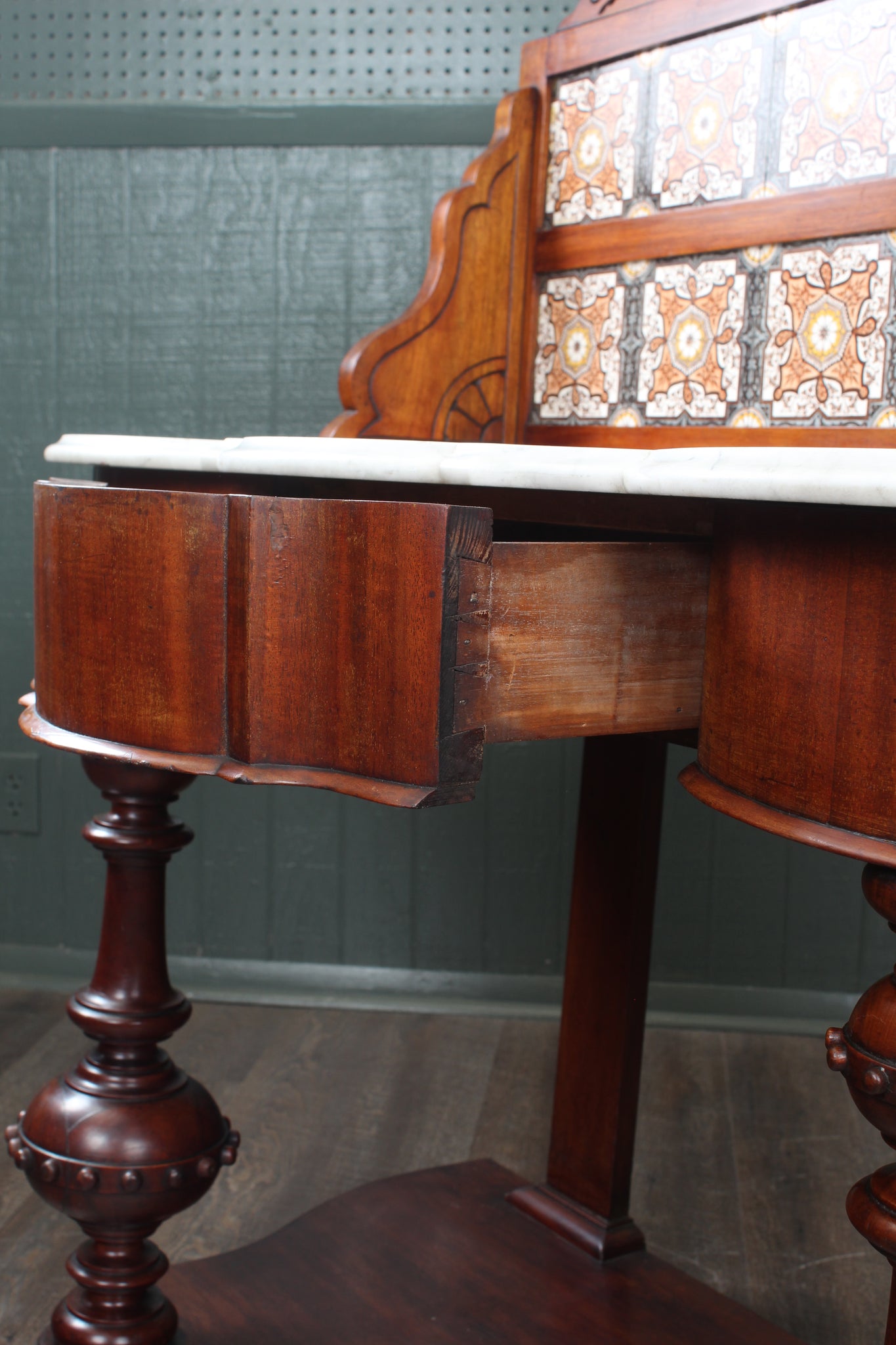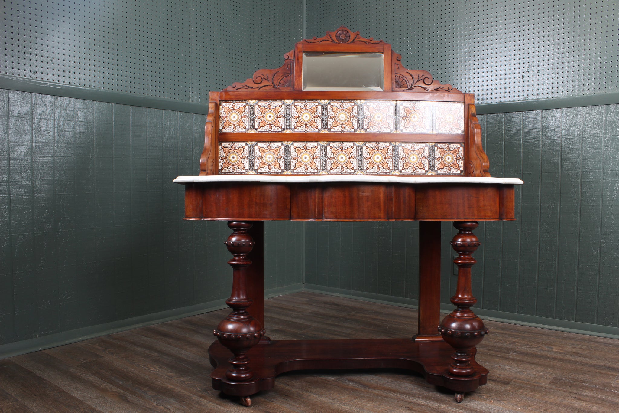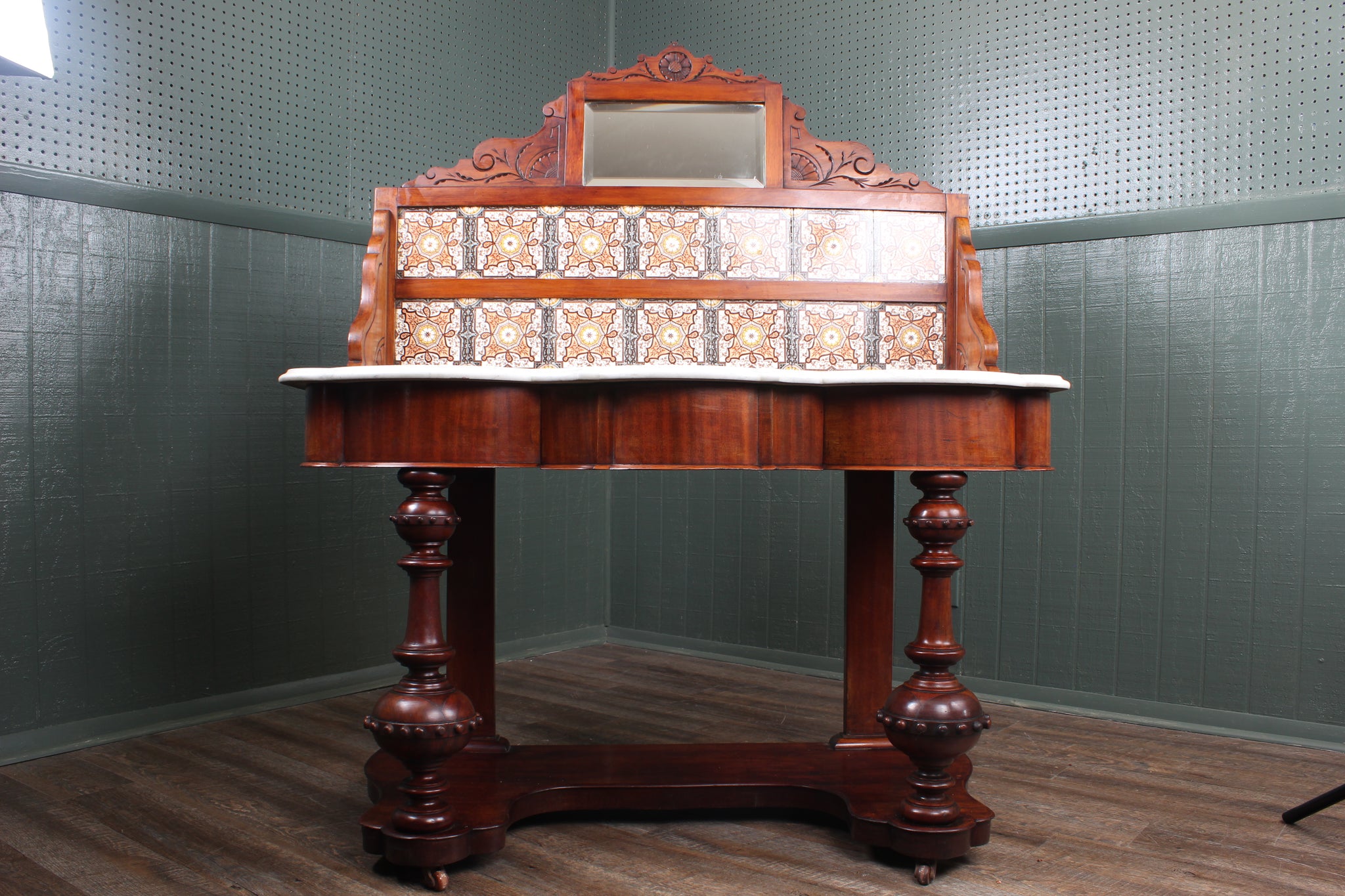 English Tile Back Victorian washstand c.189057” high | 22 1/4” deep | 49” wide