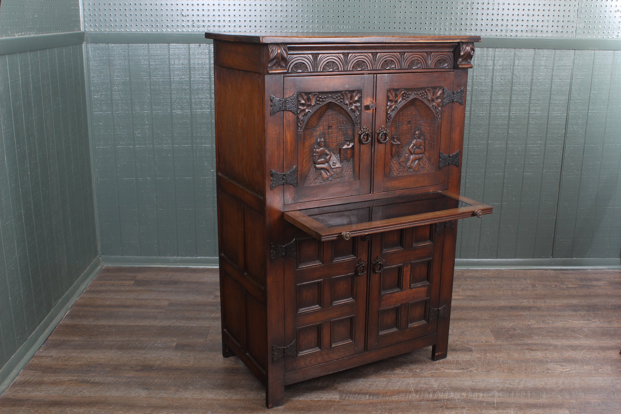 English Carved Oak Cabinet c.1920