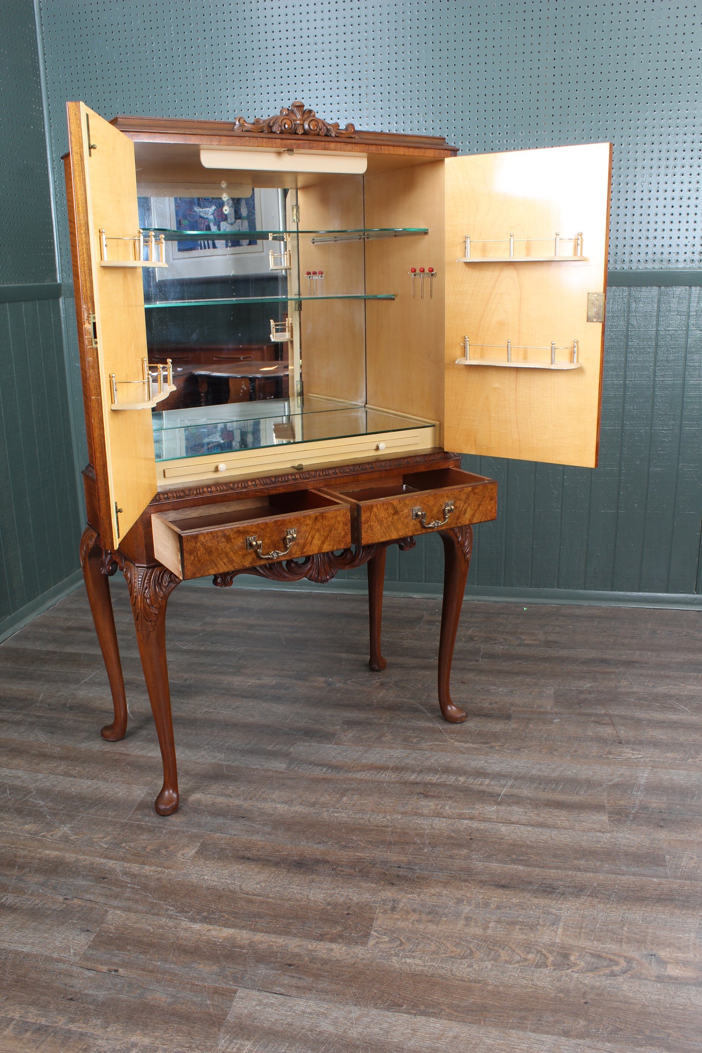 English Walnut Cocktail Cabinet c.1920