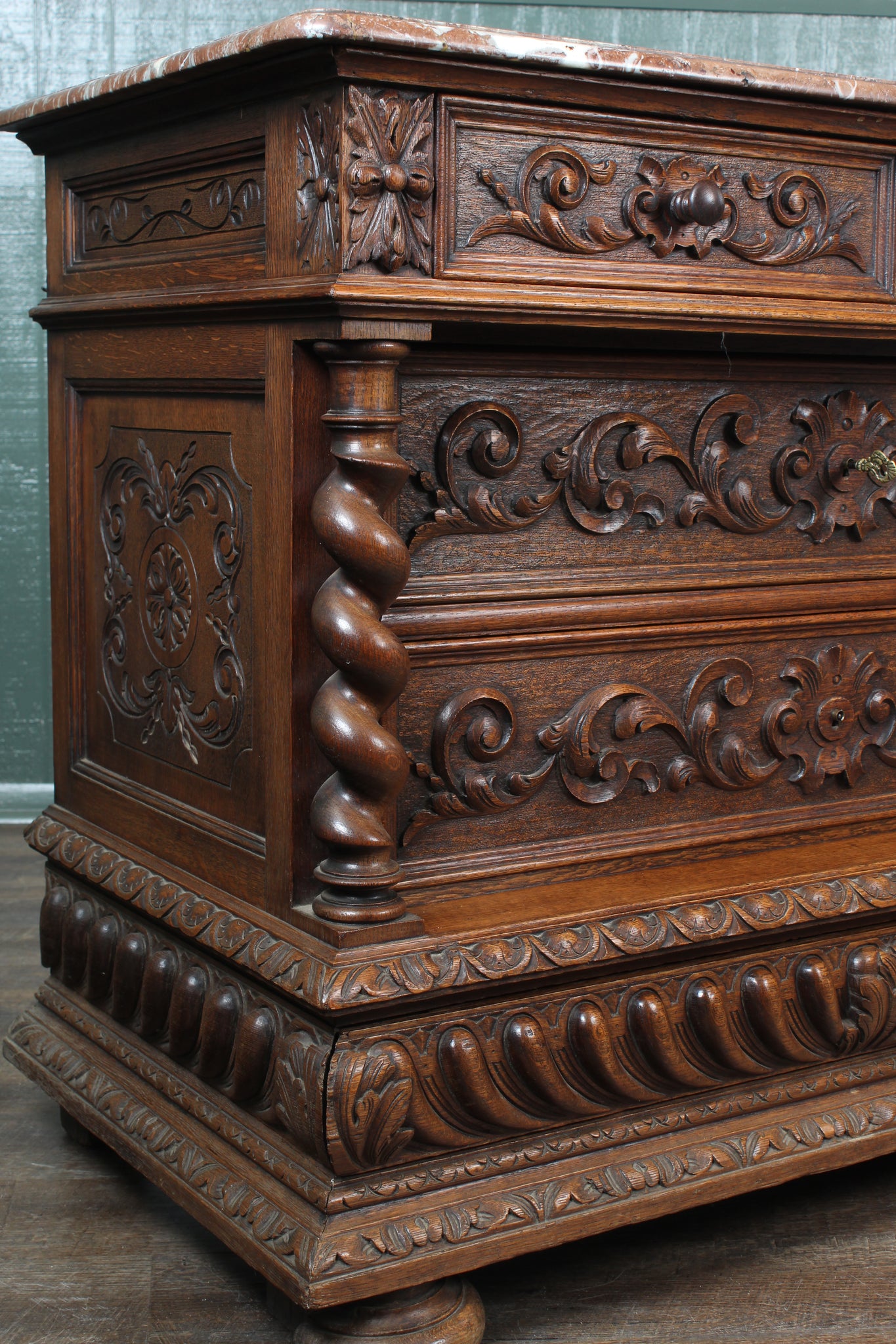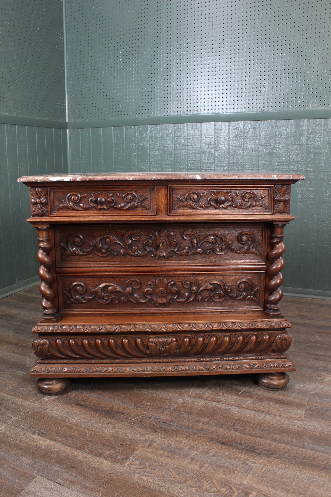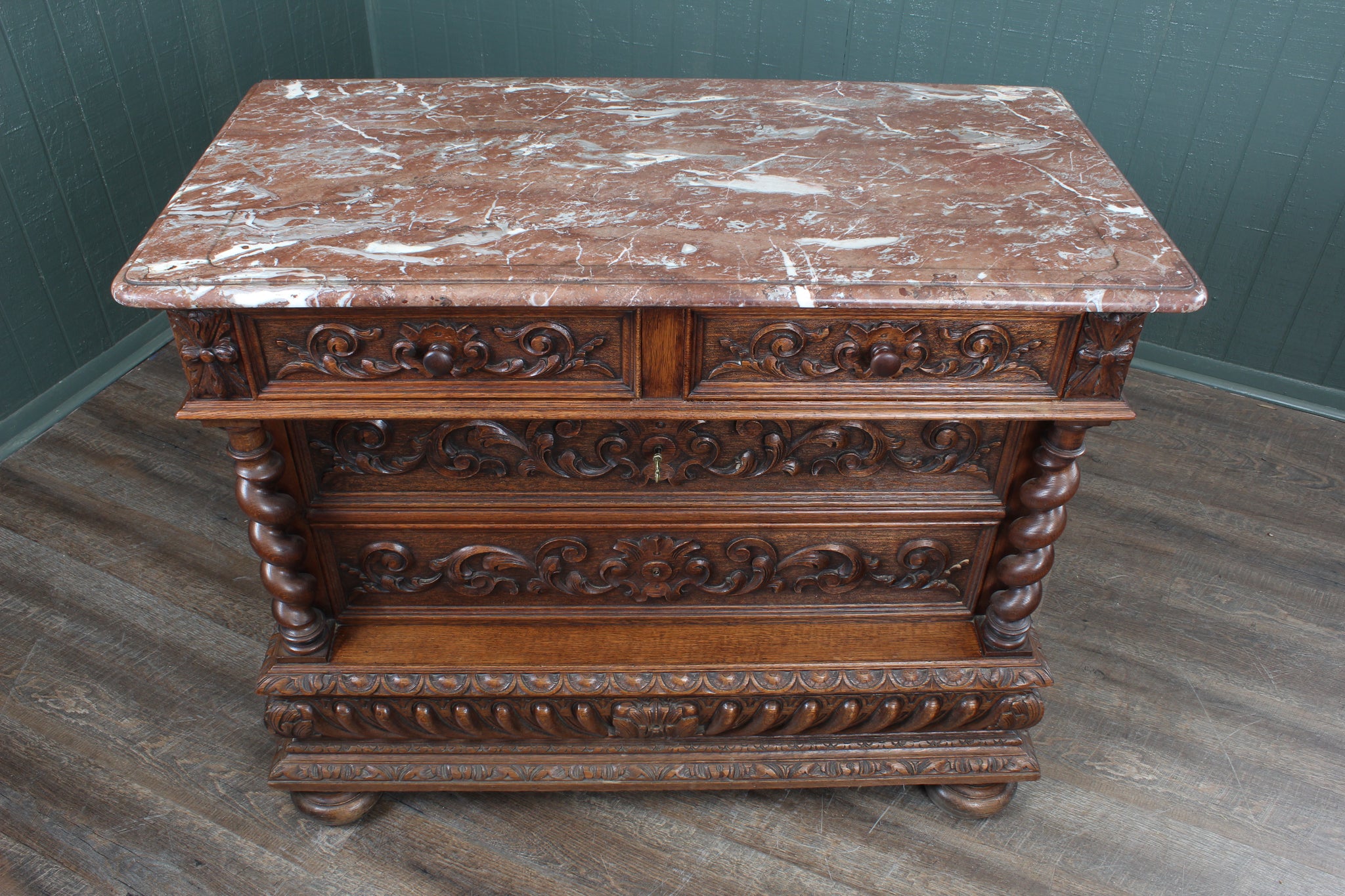Superb French Oak Marble Top Chest c.1890